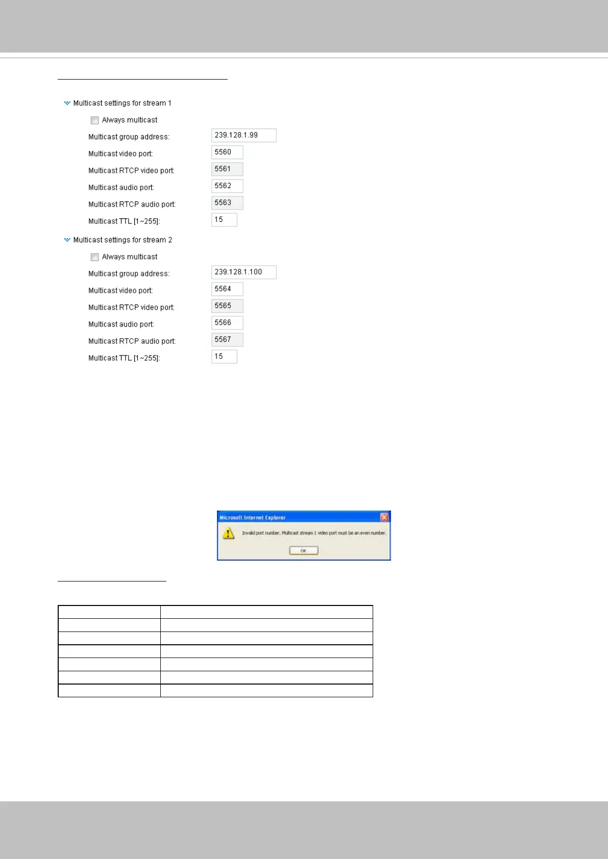 If the multicast RTP video ports are incorrectly assigned, the following warning message will be