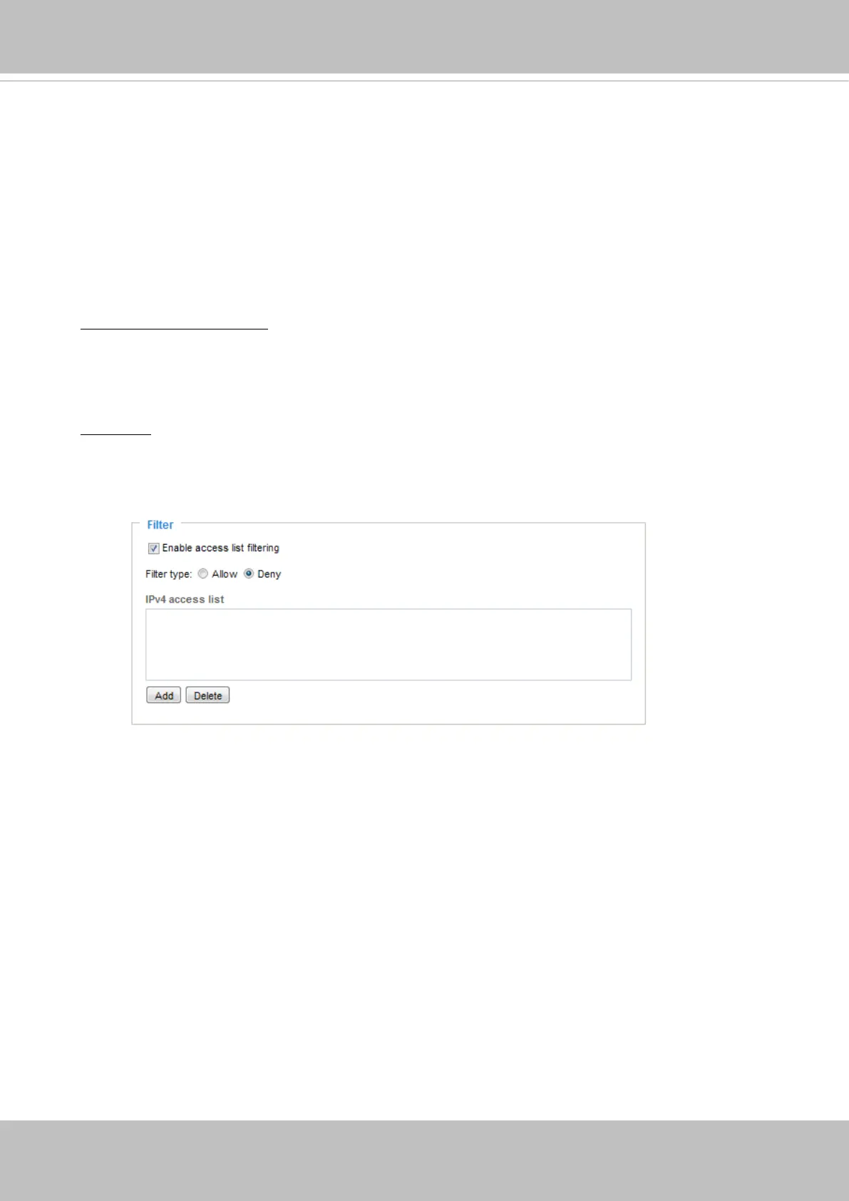 Enable access list ltering: Check this item and click Save if you want to enable the access list