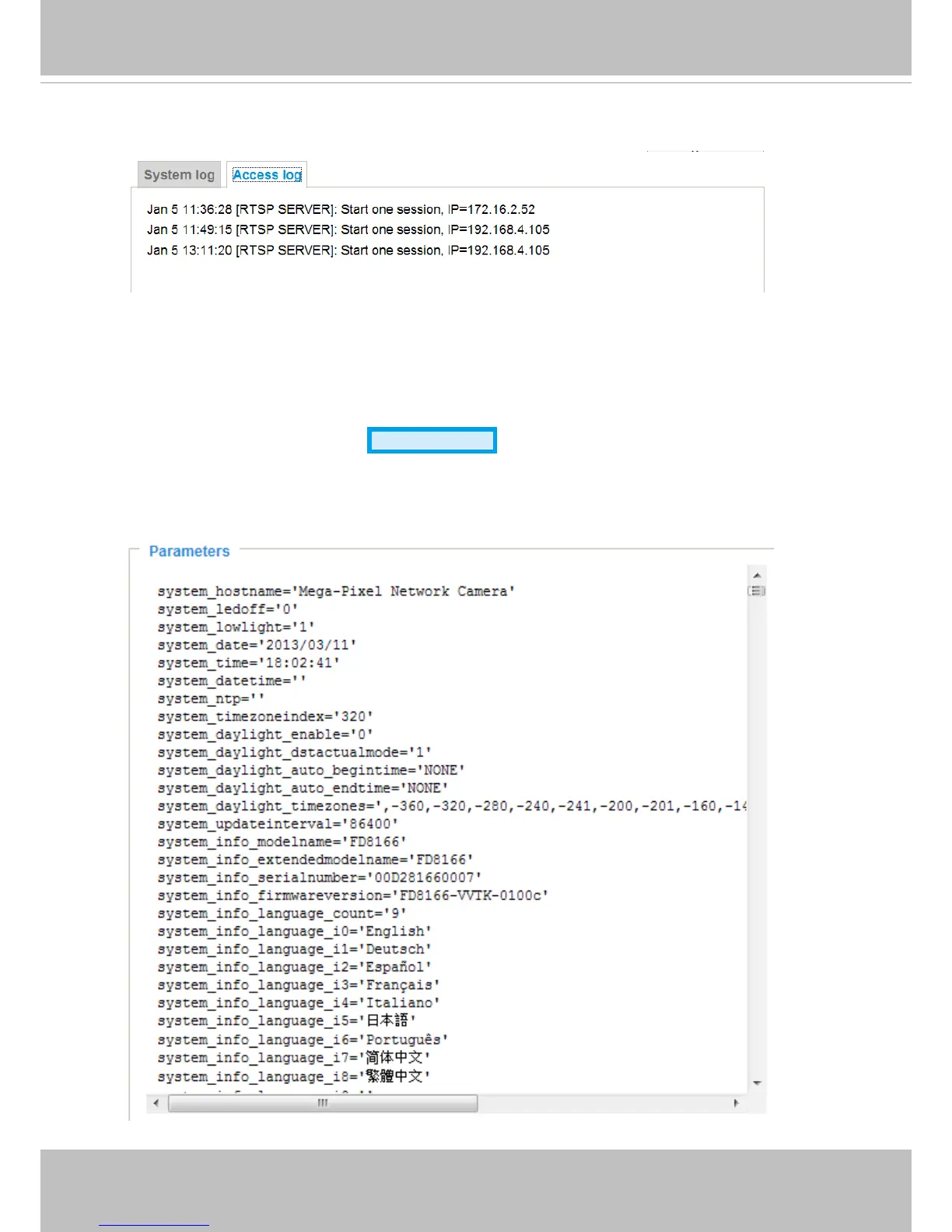 administrators) in a chronological order. The access log is stored in the Network Camera’s buffer