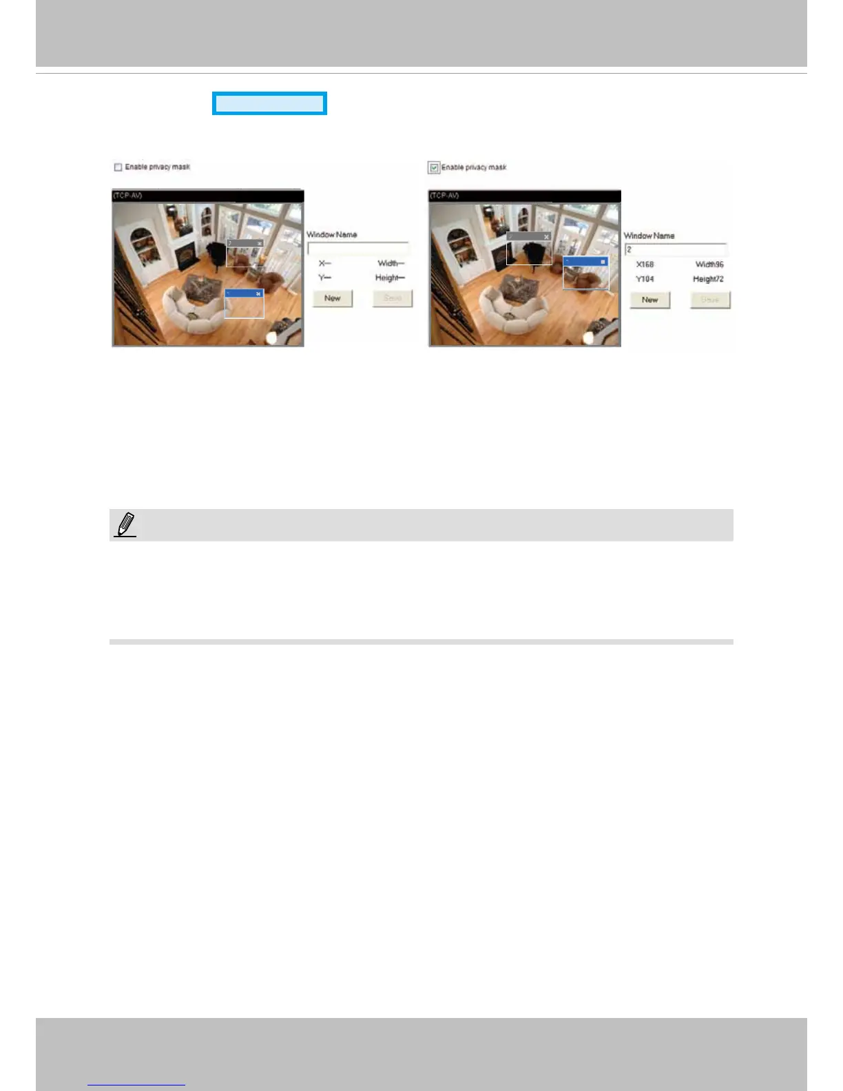 Up to 5 privacy mask windows can be congured on the same screen.