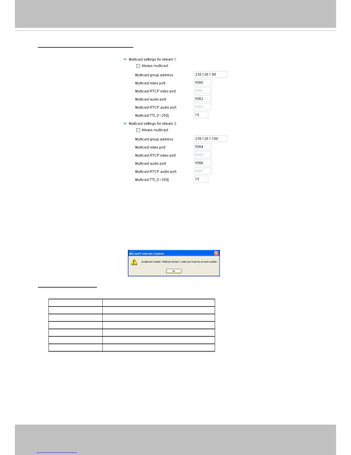 If the multicast RTP video ports are incorrectly assigned, the following warning message will be