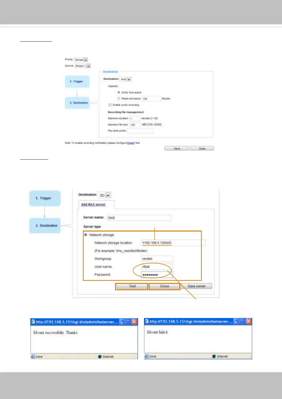 You can select the SD card or network storage (NAS) for the recorded video files. If you have not