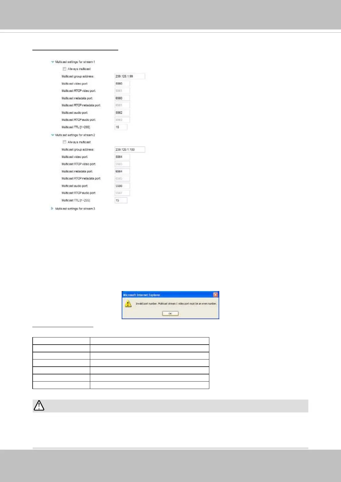 If the multicast RTP video ports are incorrectly assigned, the following warning message will be