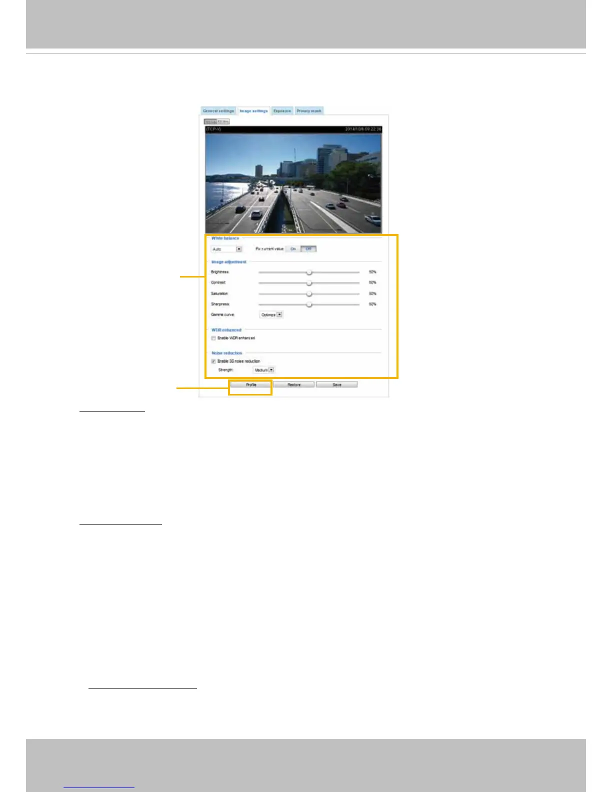 On this page, you can tune the White balance, Image adjustment and WDR enhanced .