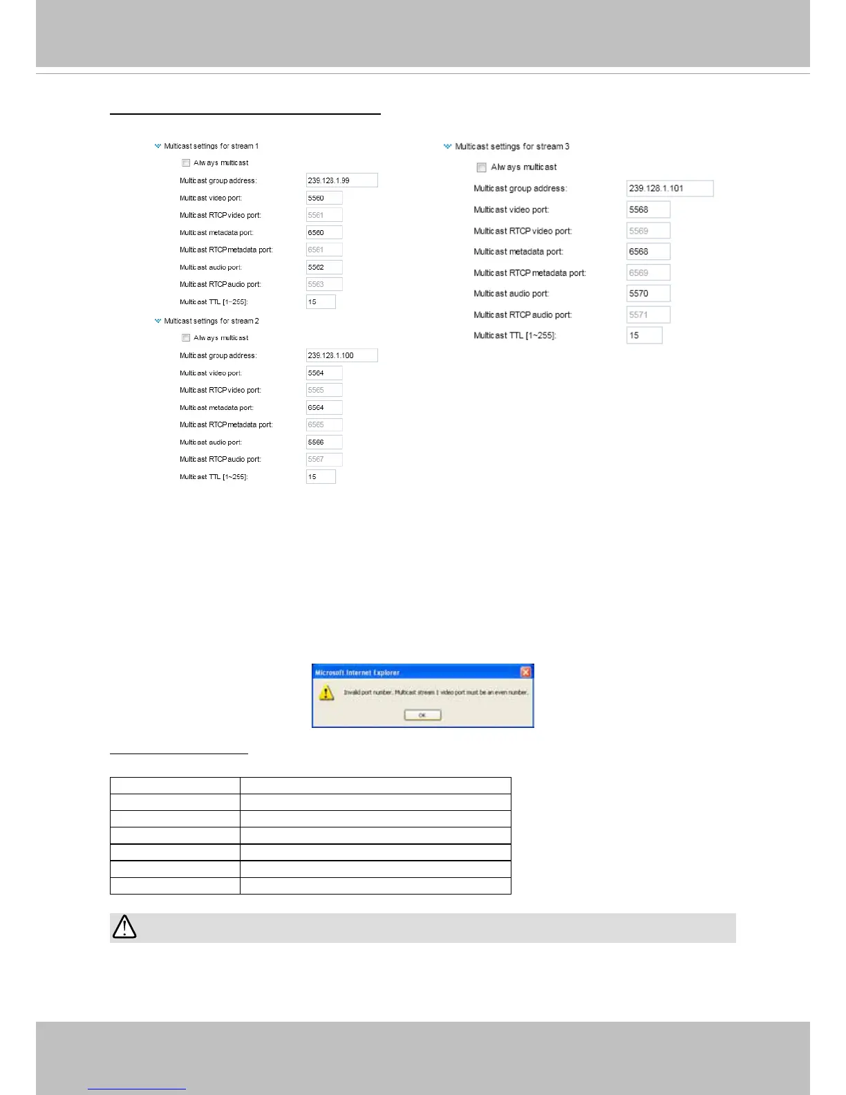 If the multicast RTP video ports are incorrectly assigned, the following warning message will be