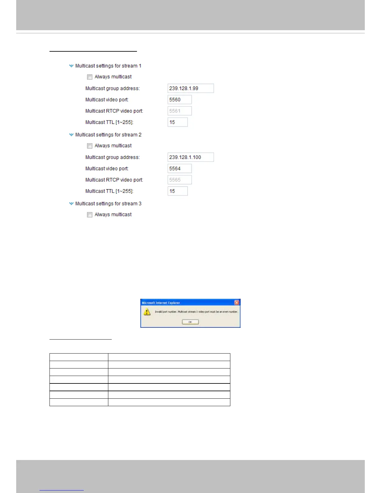 If the multicast RTP video ports are incorrectly assigned, the following warning message will be