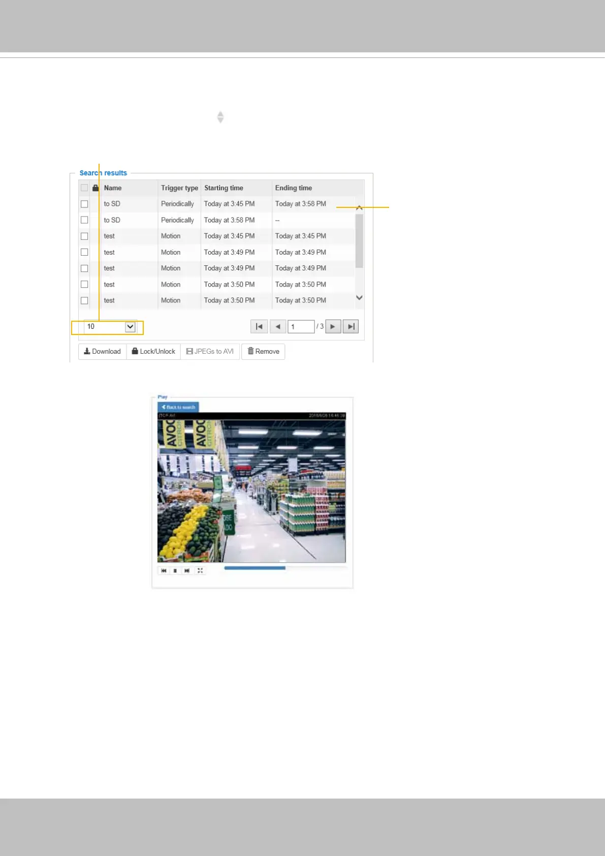 The following is an example of search results. There are four columns: Trigger time, Media type,