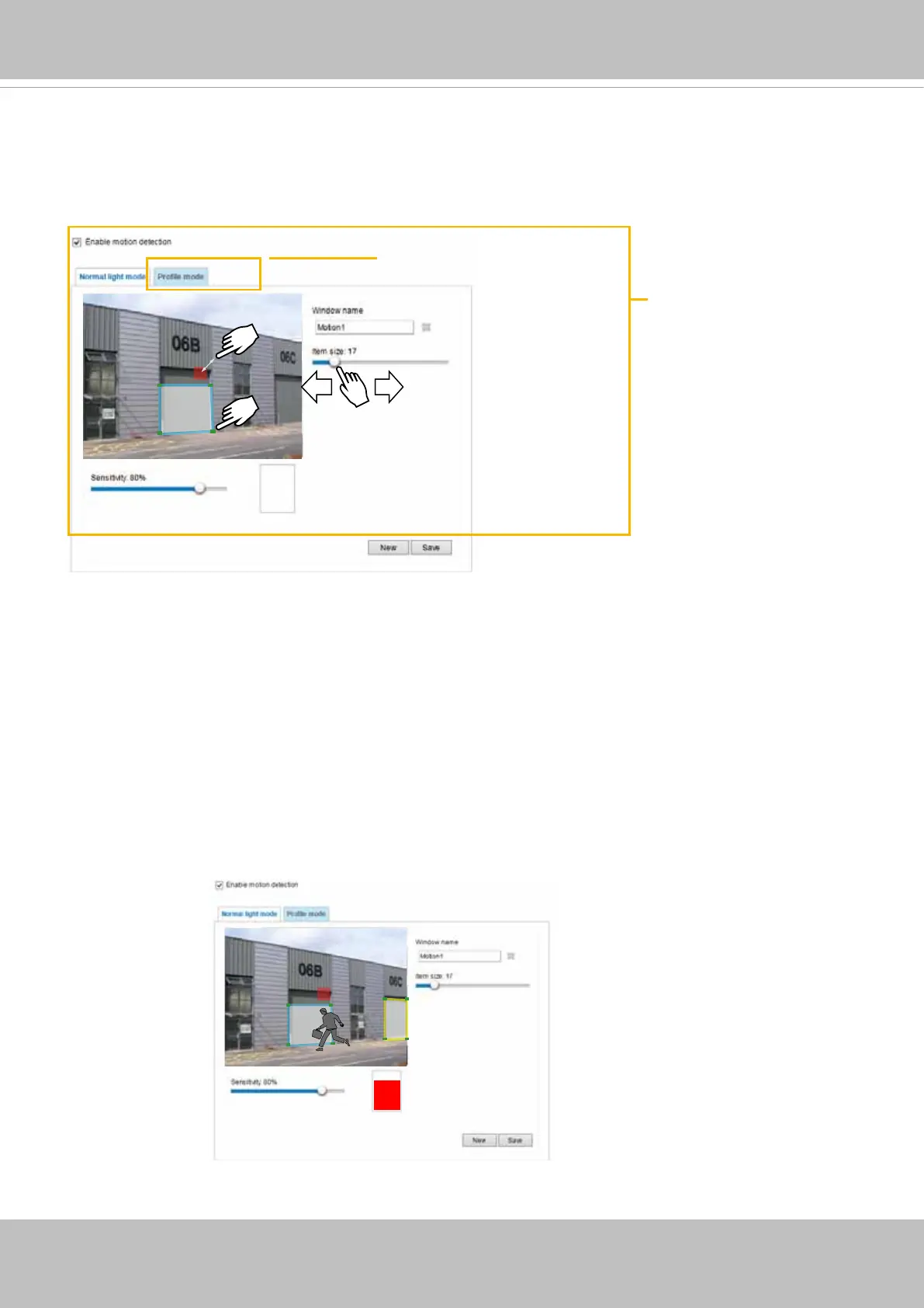 3. Dene the sensitivity to moving objects by moving the Sensitivity slide bar. Note that a high sensitivity