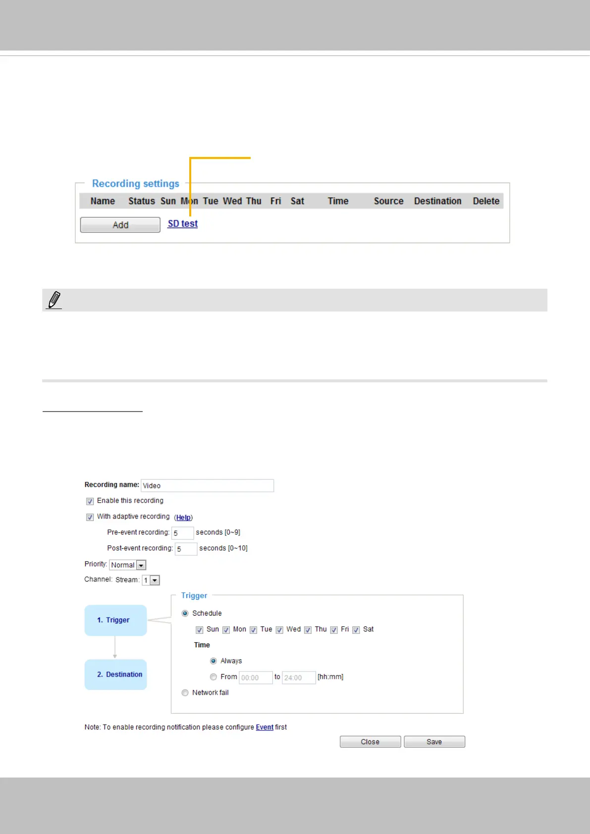 Click Add to open the recording setting window. On this page, you can dene the adaptive recording,
