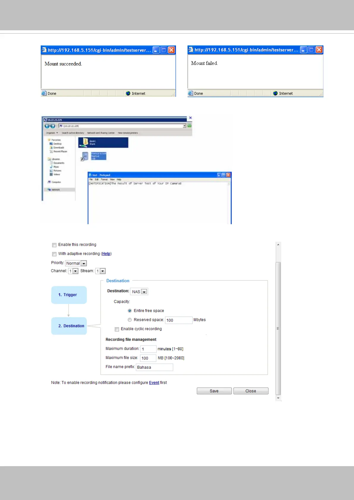2. Click Test to check the setting. The result will be shown in the pop-up window.