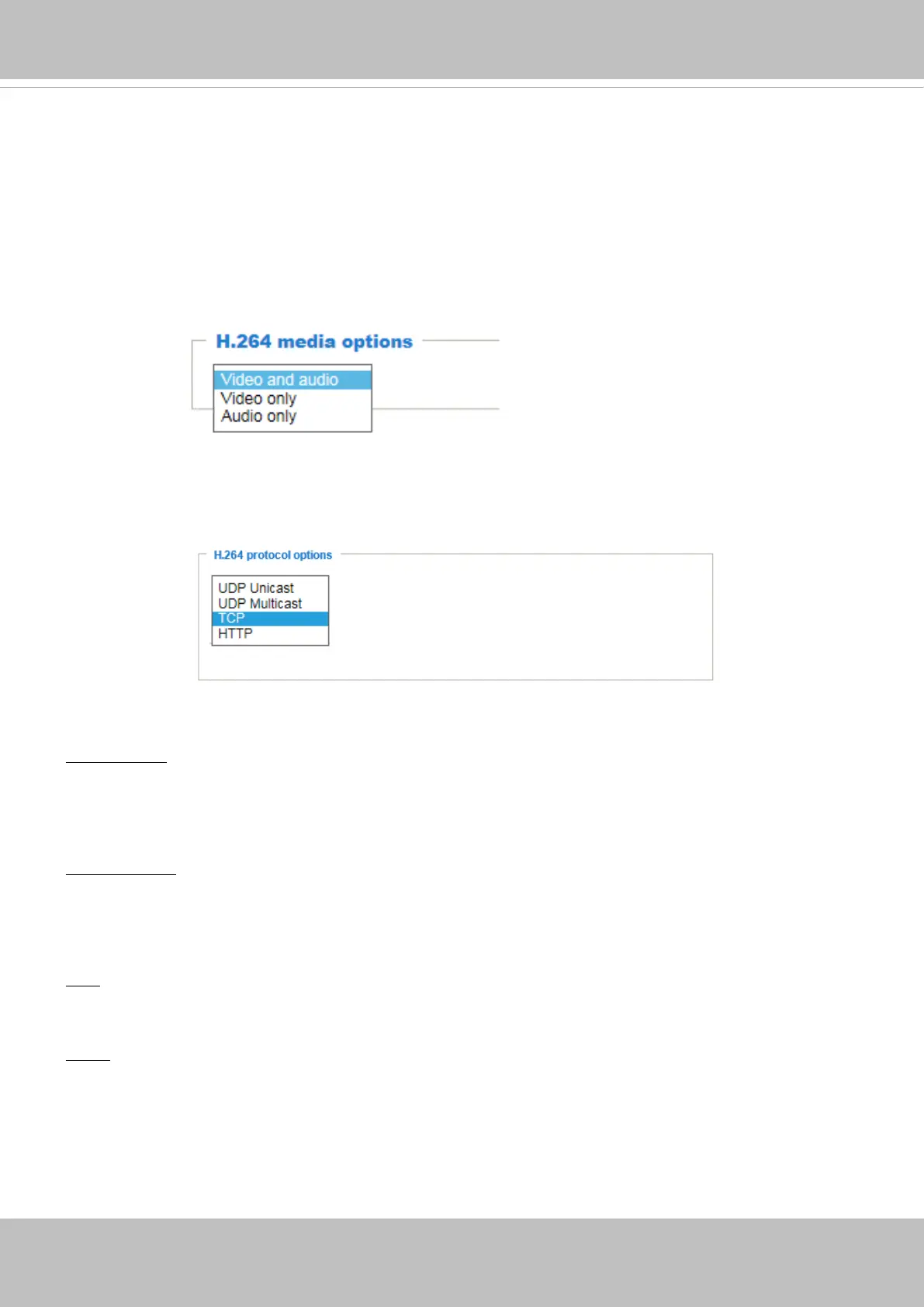 Select to stream video or audio data or both. This is enabled only when the video mode is set to H.264.