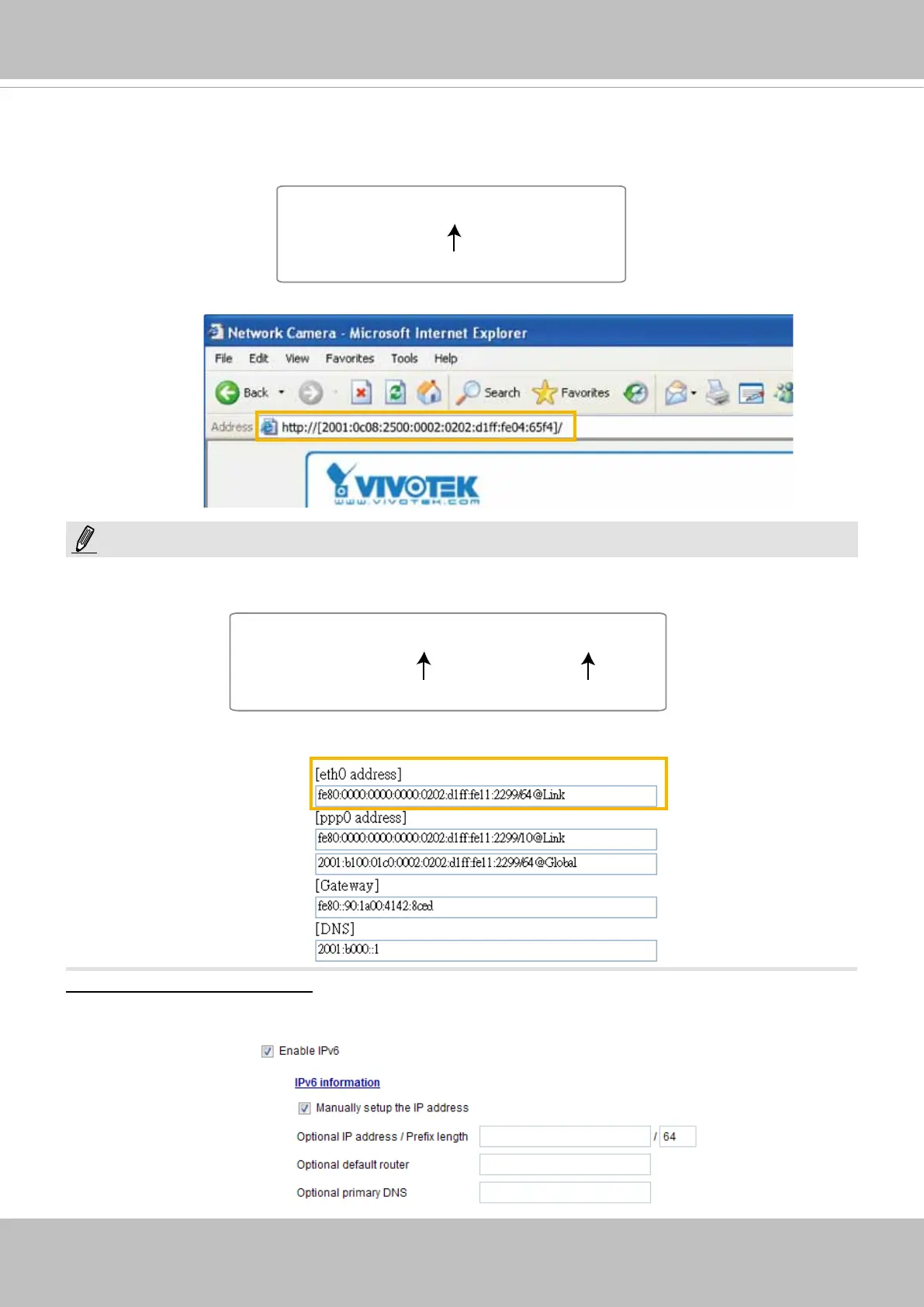 2. Enter the link-global or link-local IPv6 address in the address bar of your web browser.