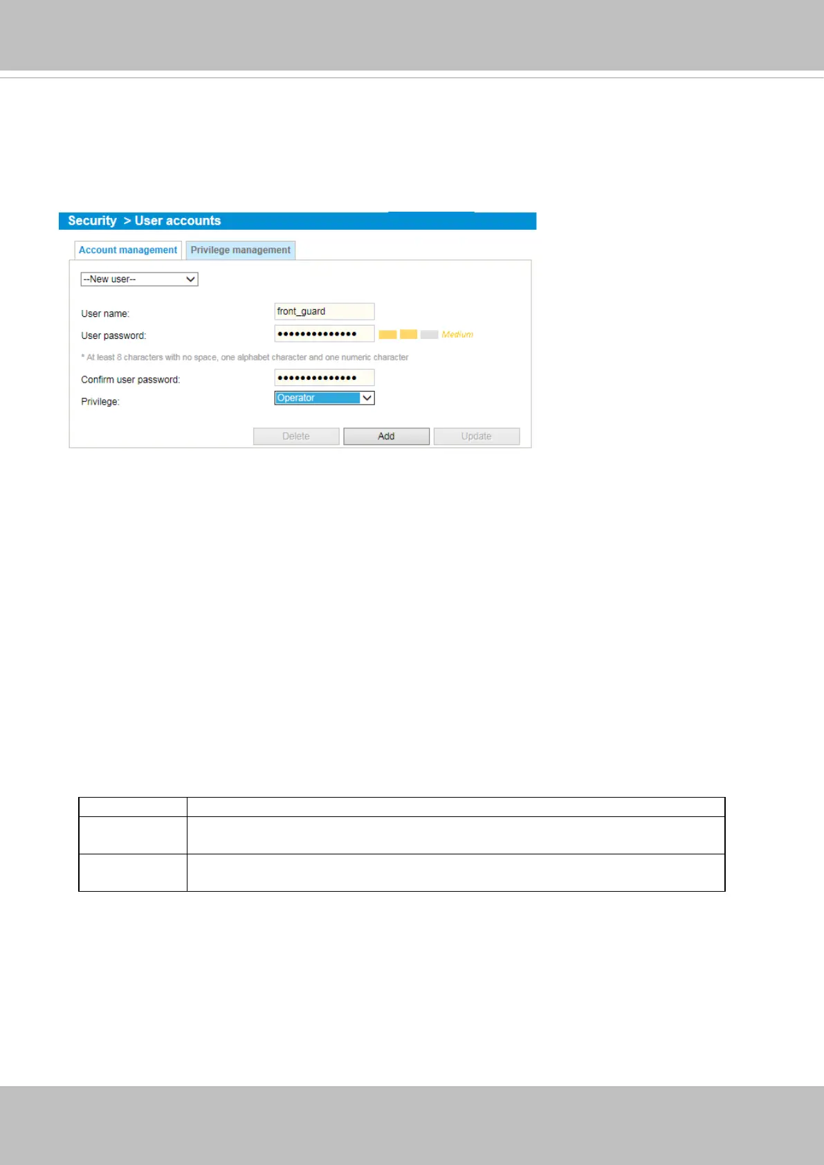 3. Select the privilege level for the new user account. Click Add to enable the setting.