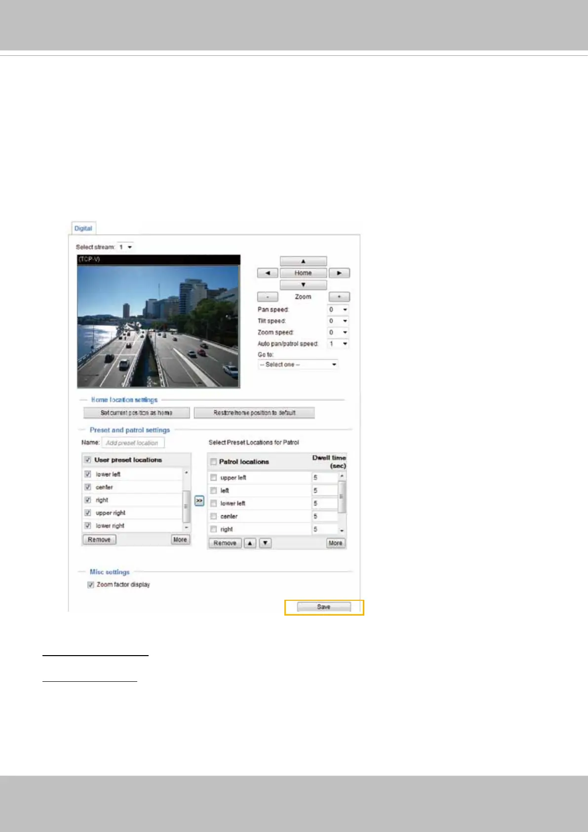 When completed with the e-PTZ settings, click Save to enable the settings on this page.