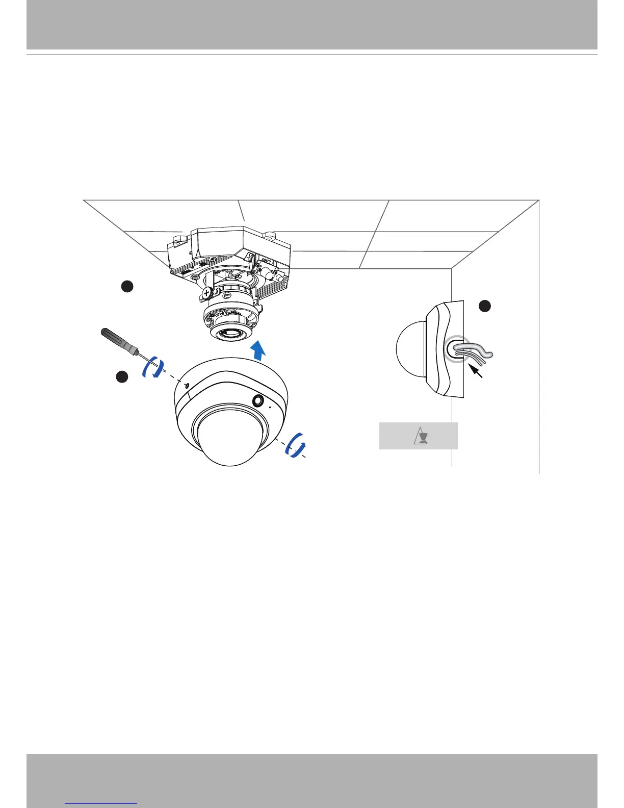 2. Attach the dome cover to the camera as the direction shown below. Tighten two screws