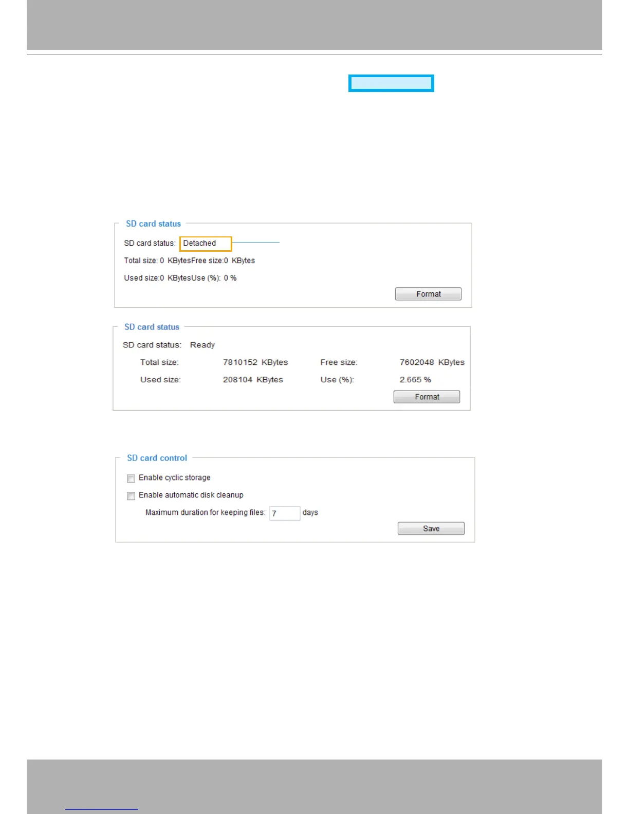 For example, if you enter “7 days”, the recorded les will be stored on the SD card for 7 days.