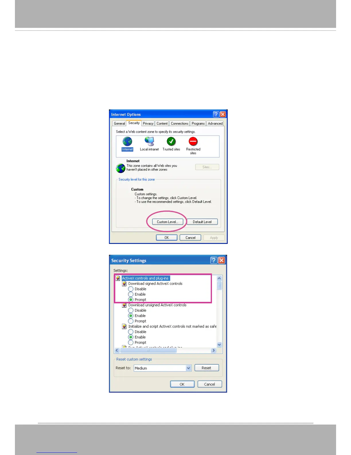 ► If you see a dialog box indicating that your security settings prohibit running ActiveX