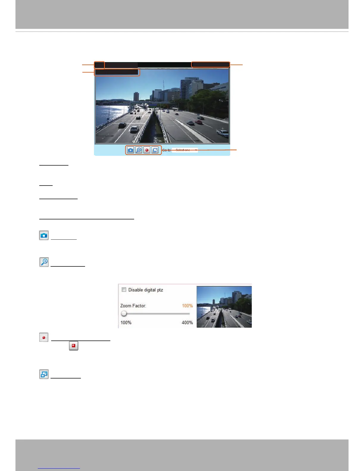 Snapshot: Click this button to capture and save still images. The captured images will be displayed