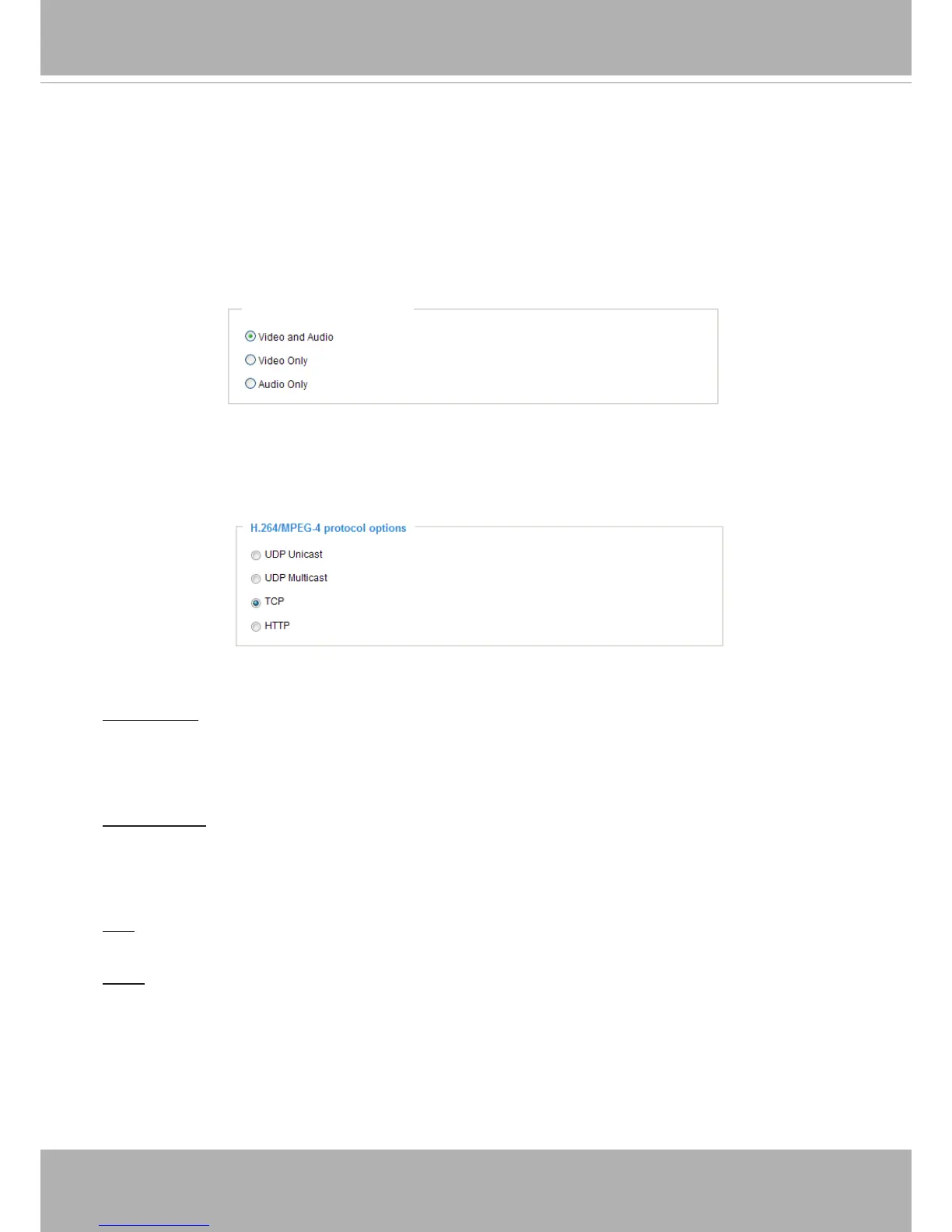 Select to stream video or audio data or both. This is enabled only when the video mode is set to H.264 or