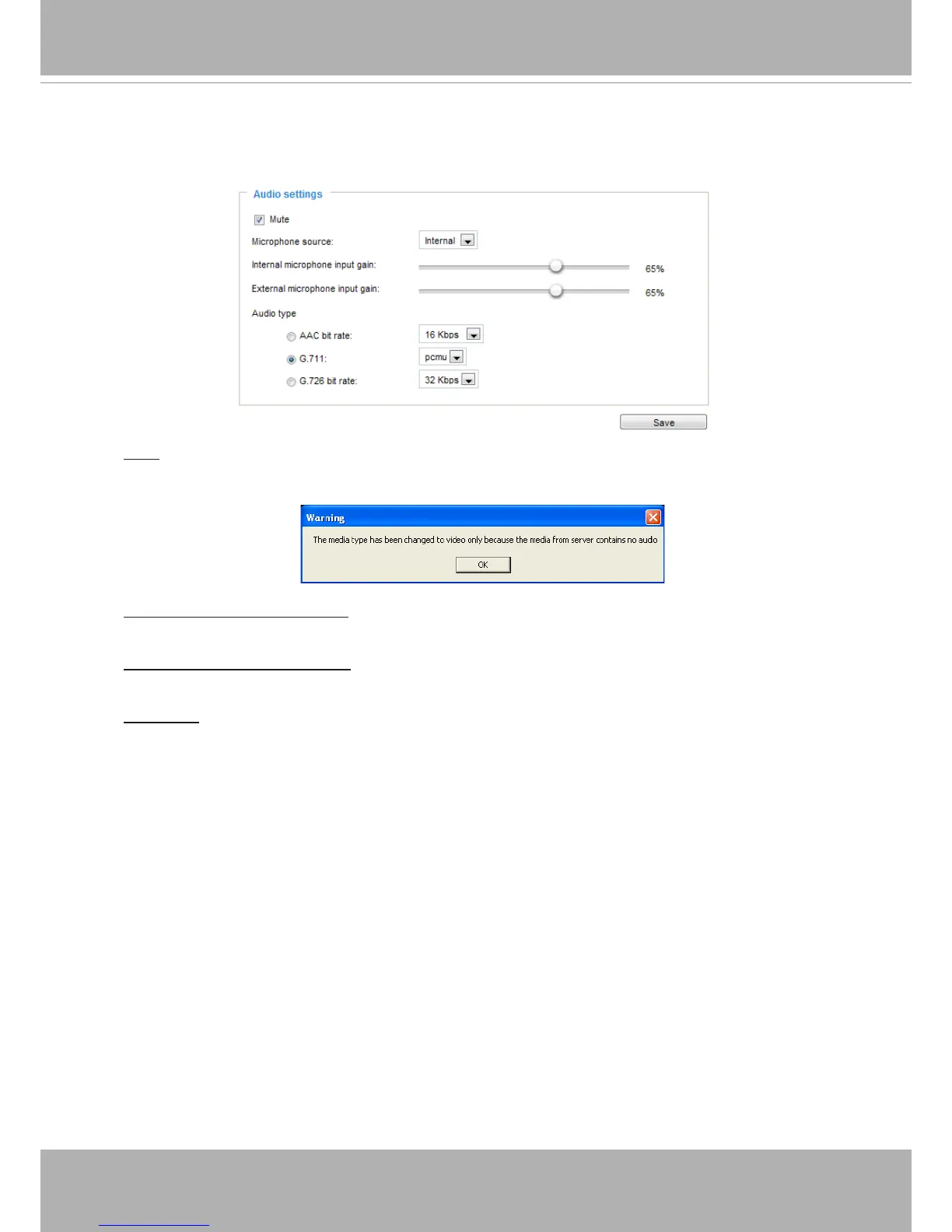 Mute: Select this option to disable audio transmission from the Network Camera to all clients. Note