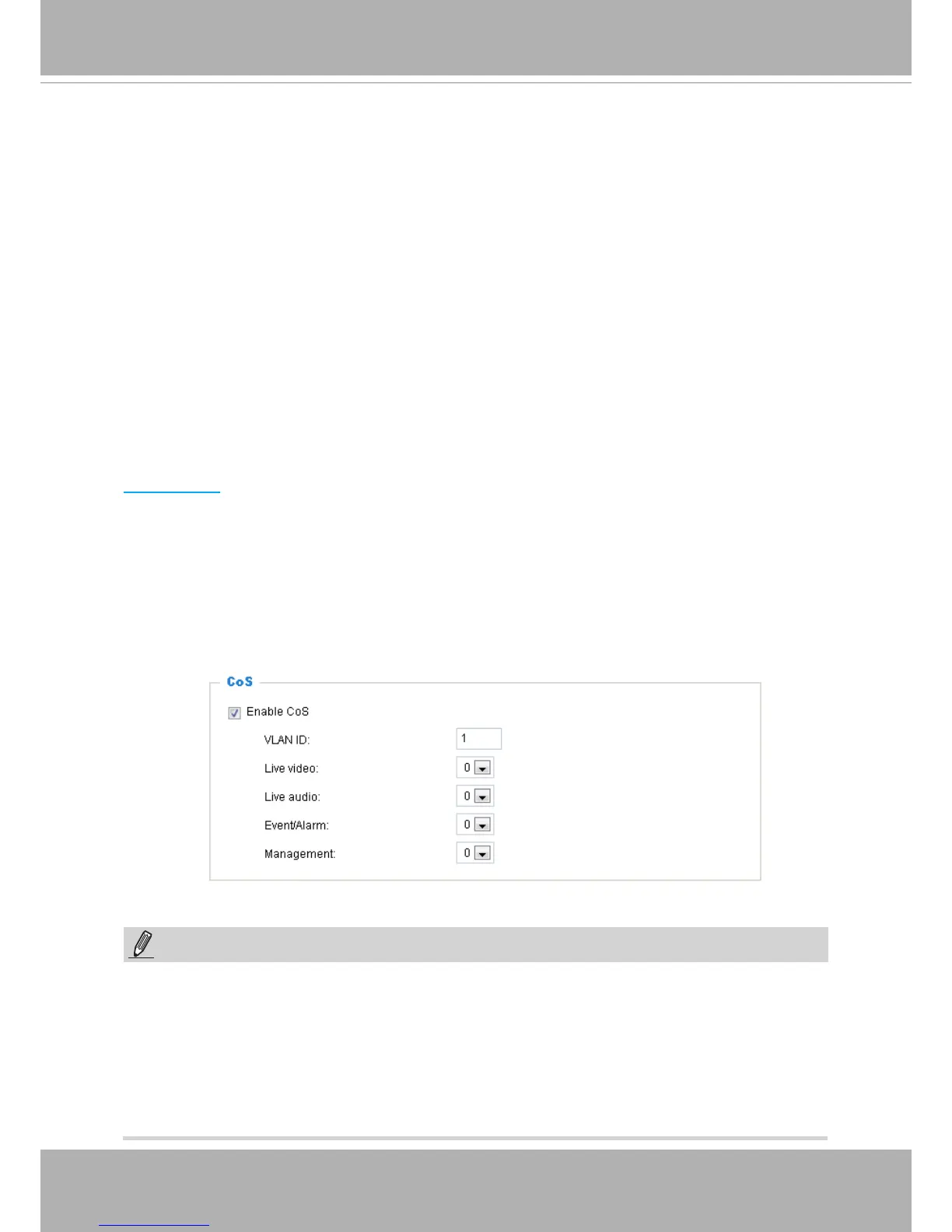 Below is the setting column for CoS. Enter the VLAN ID of your switch (0~4095) and choose the