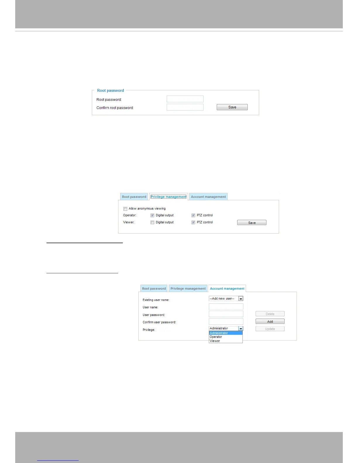 Digital Output & PTZ control: You can modify the manage privilege of operators or viewers. Check