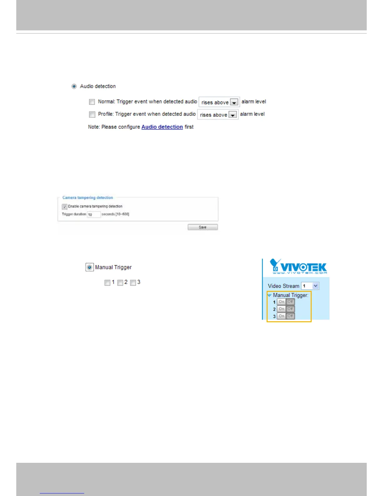 This option allows the Network Camera to trigger when the camera detects that is is being tampered