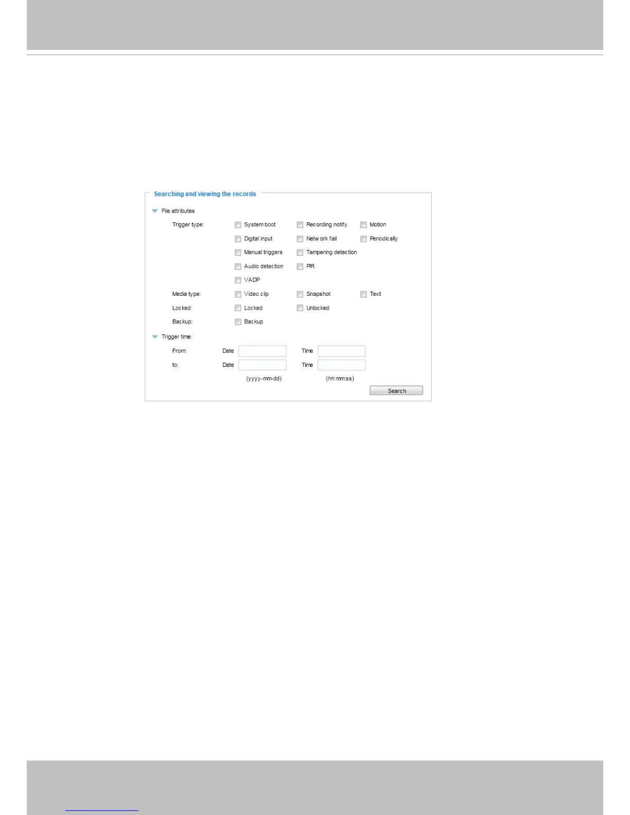 This column allows the user to set up search criteria for recorded data� If you do not select any criteria