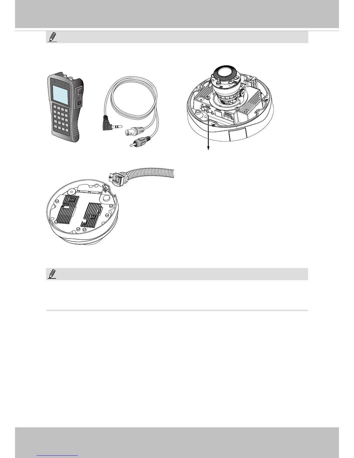 Use the included AV cable to connect to a camera tester or LCD monitor to begin initial