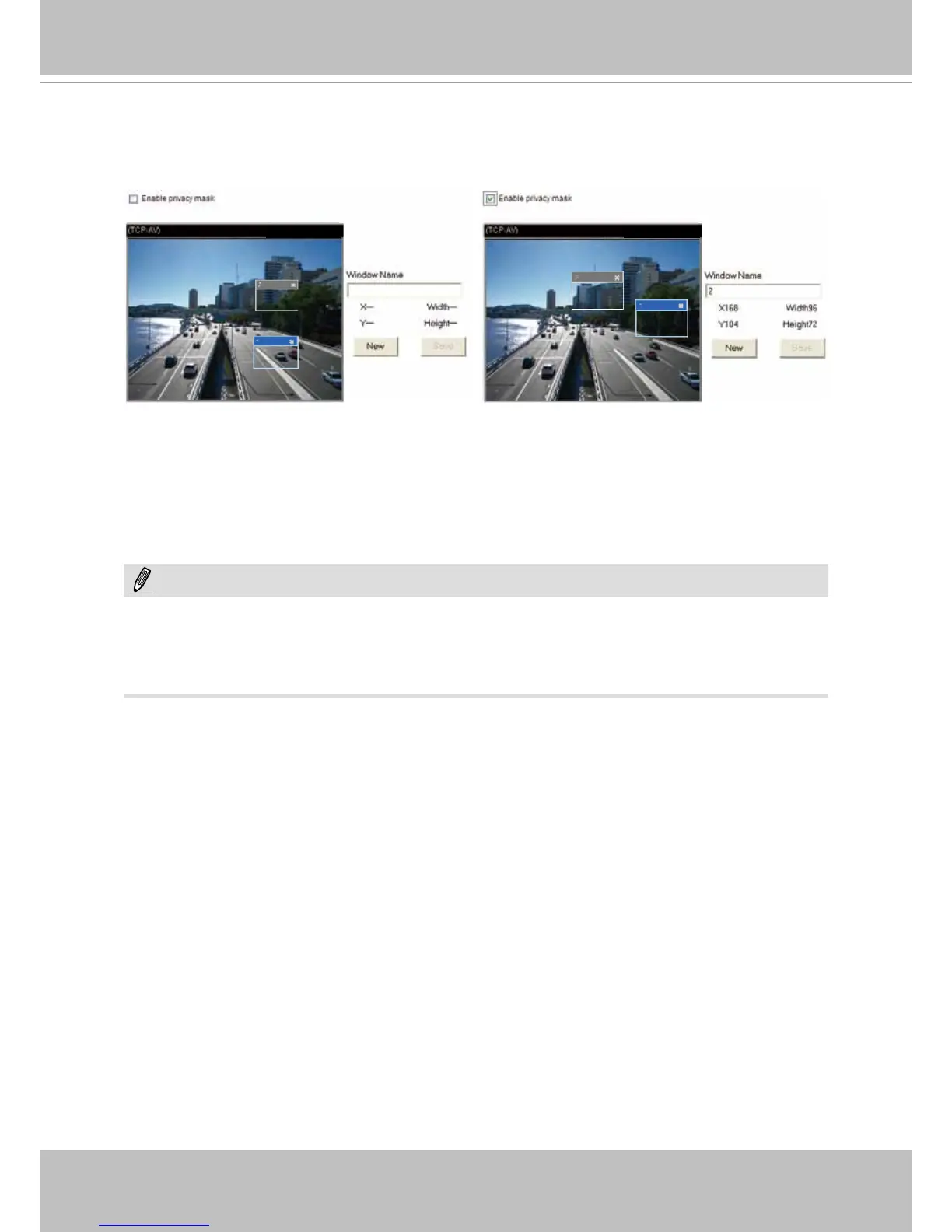 Up to 5 privacy mask windows can be set up on the same screen�