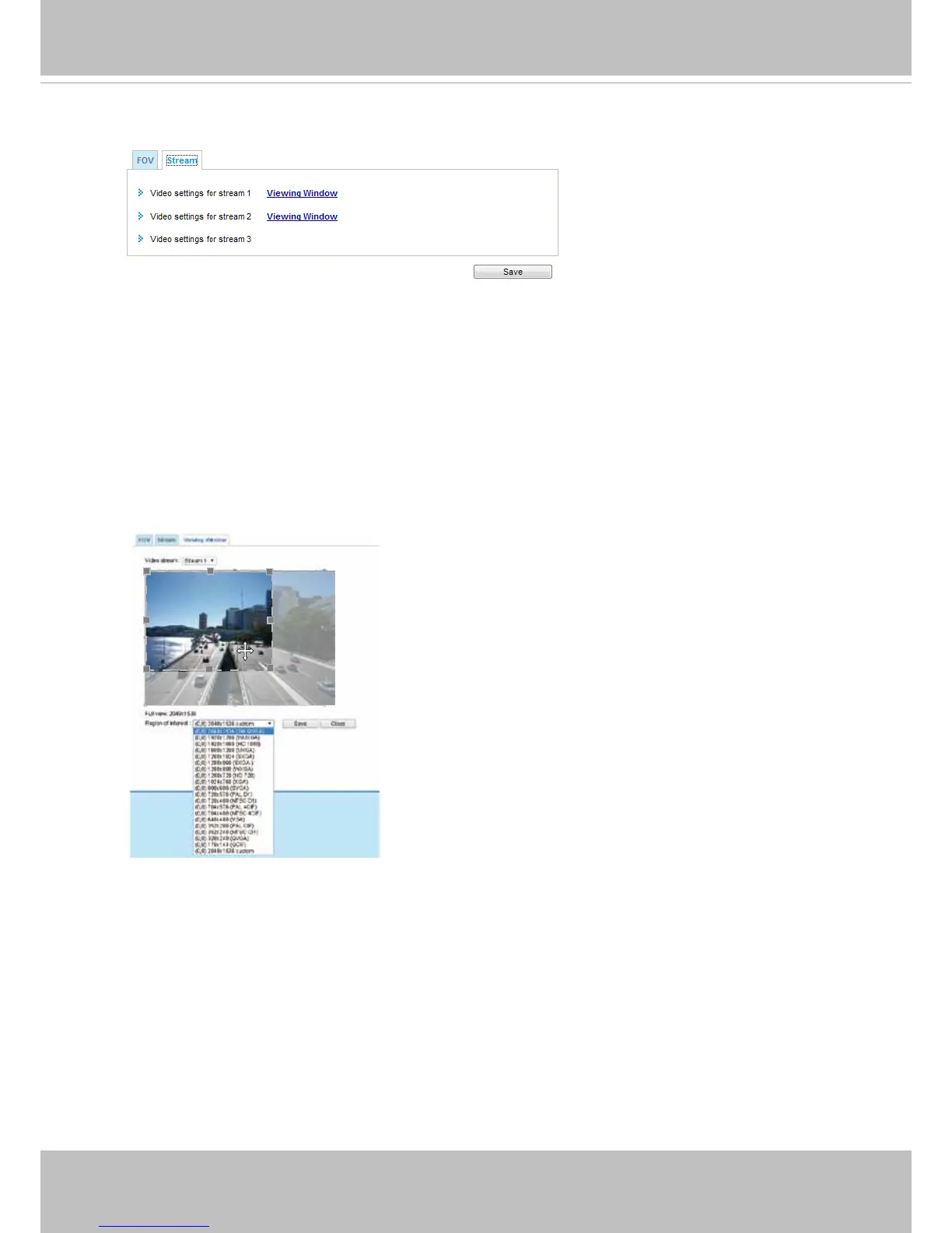 ■ Stream 1: Users can dene the "Region of Interest" (viewing region) and the "Output Frame Size"