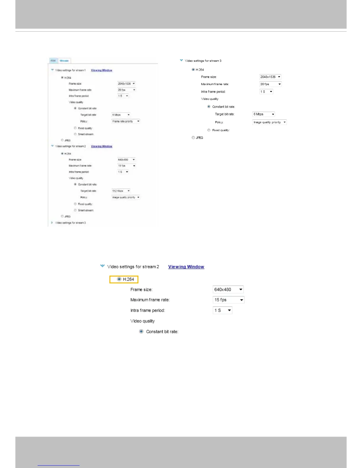 a higher bit rate for live viewing on web browsers� Note that a larger frame size takes up more