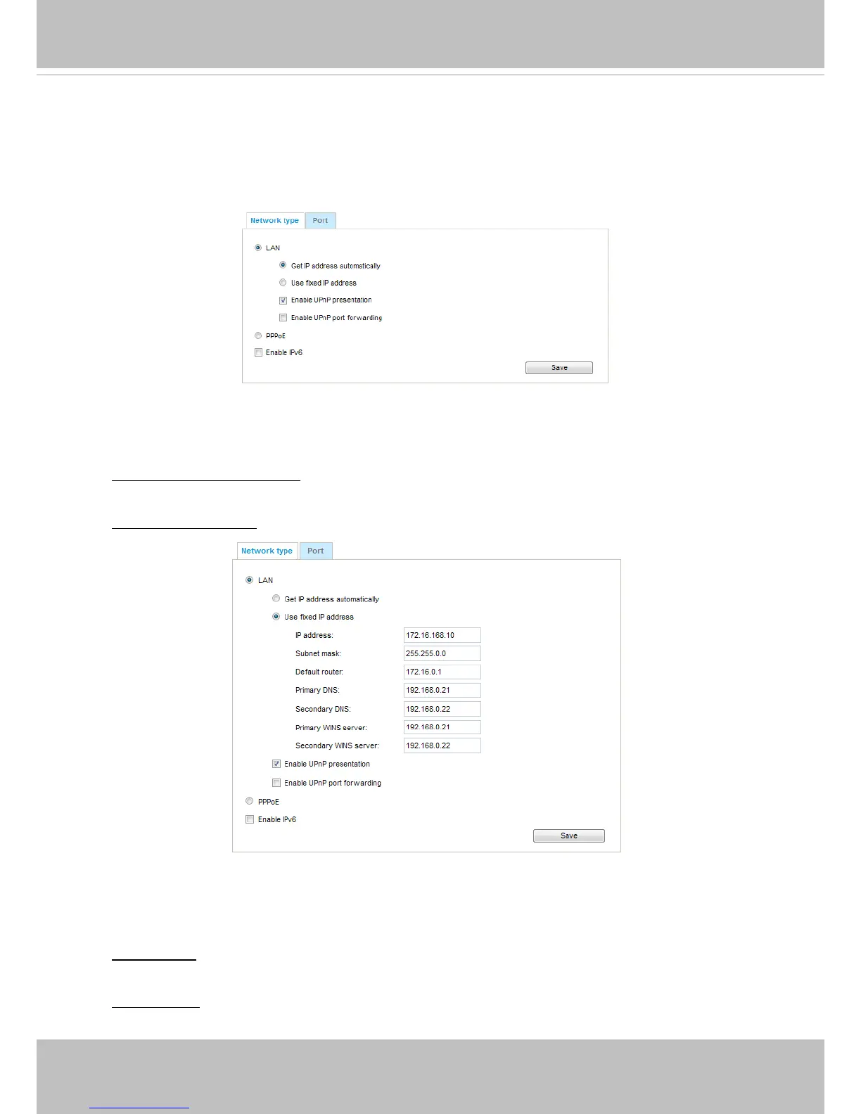 Use fixed IP address: Select this option to manually assign a static IP address to the Network