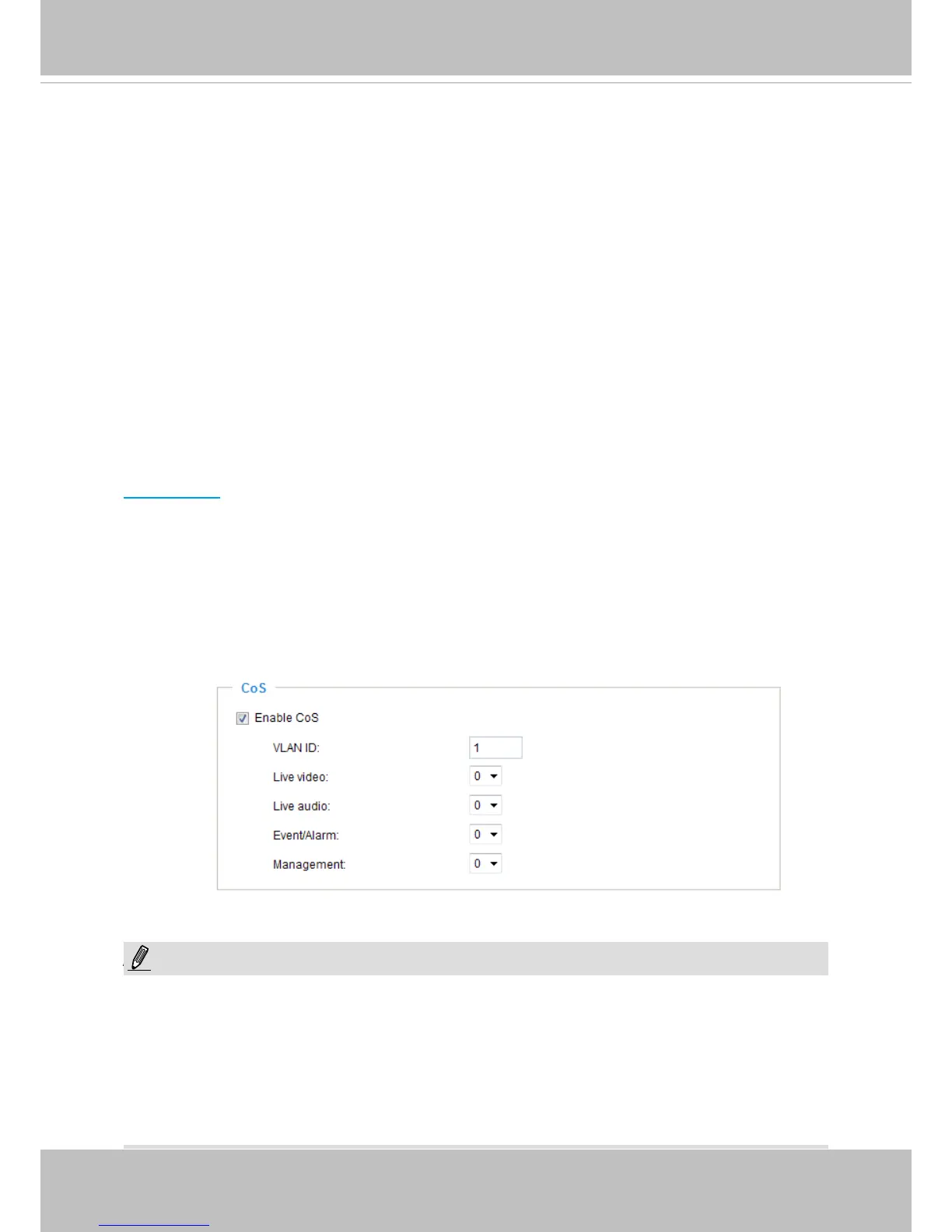 Below is the setting column for CoS� Enter the VLAN ID of your switch (0~4095) and choose the