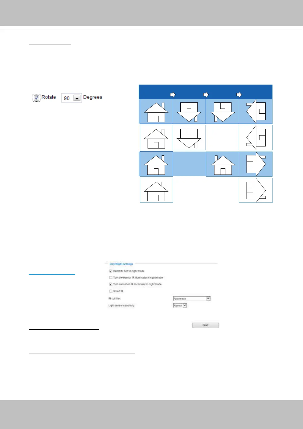 Video orientation: Flip - vertically reect the display of the live video; Mirror - horizontally reect the