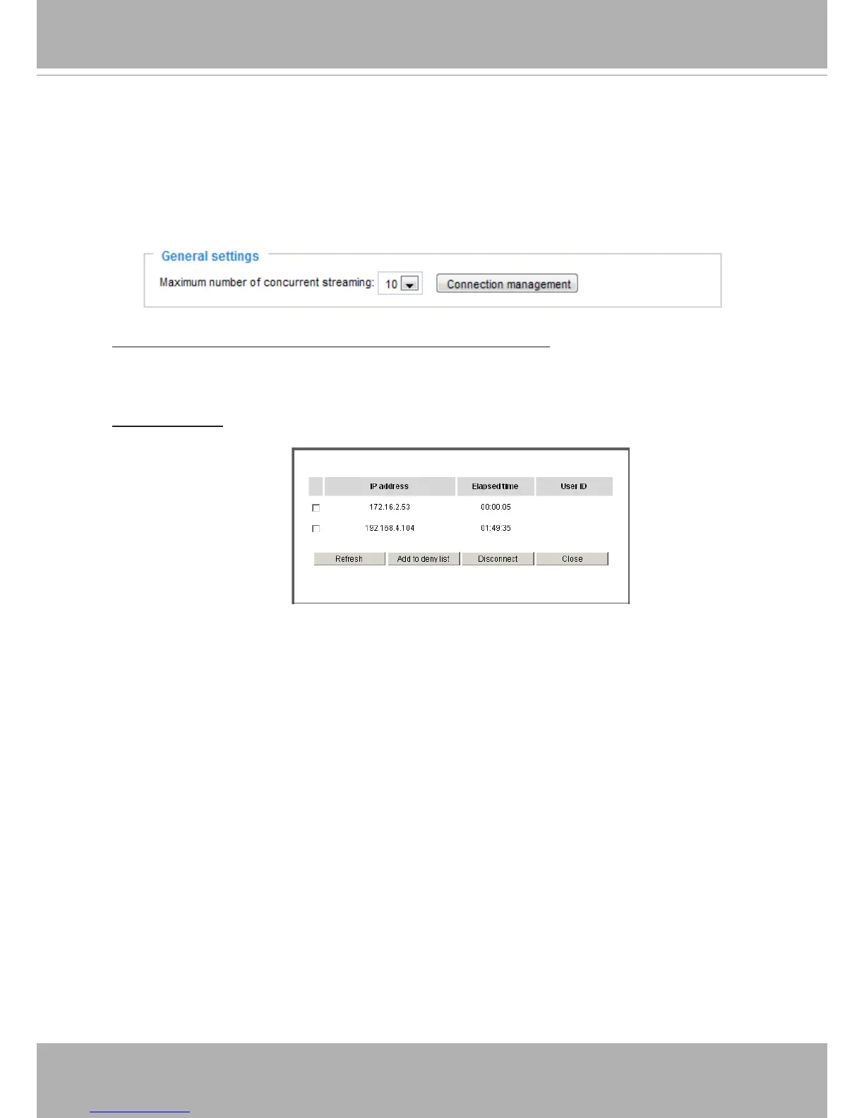■ IP address: Current connections to the Network Camera.