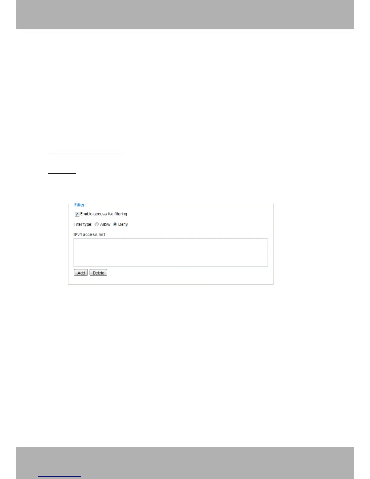 Enable access list ltering: Check this item and click Save if you want to enable the access list