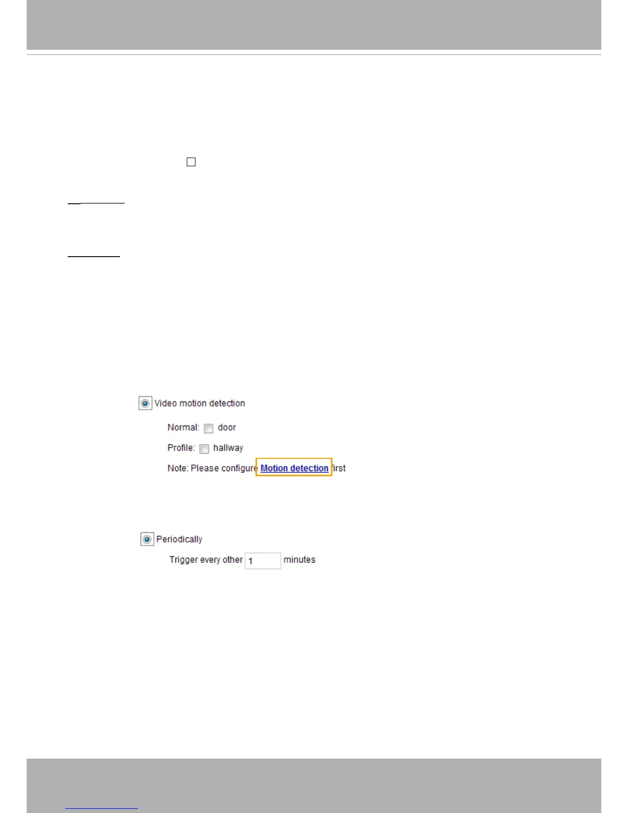 This option allows the Network Camera to trigger periodically for every other dened minute. Up to 999