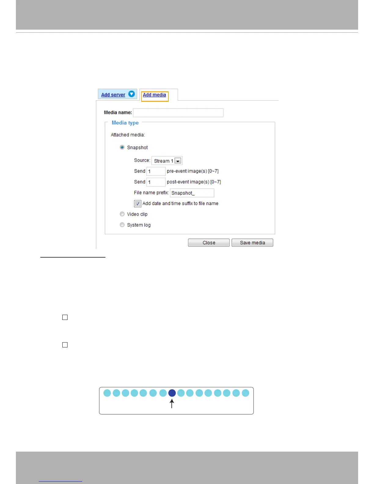 of media types available: Snapshot, Video Clip, and System log.