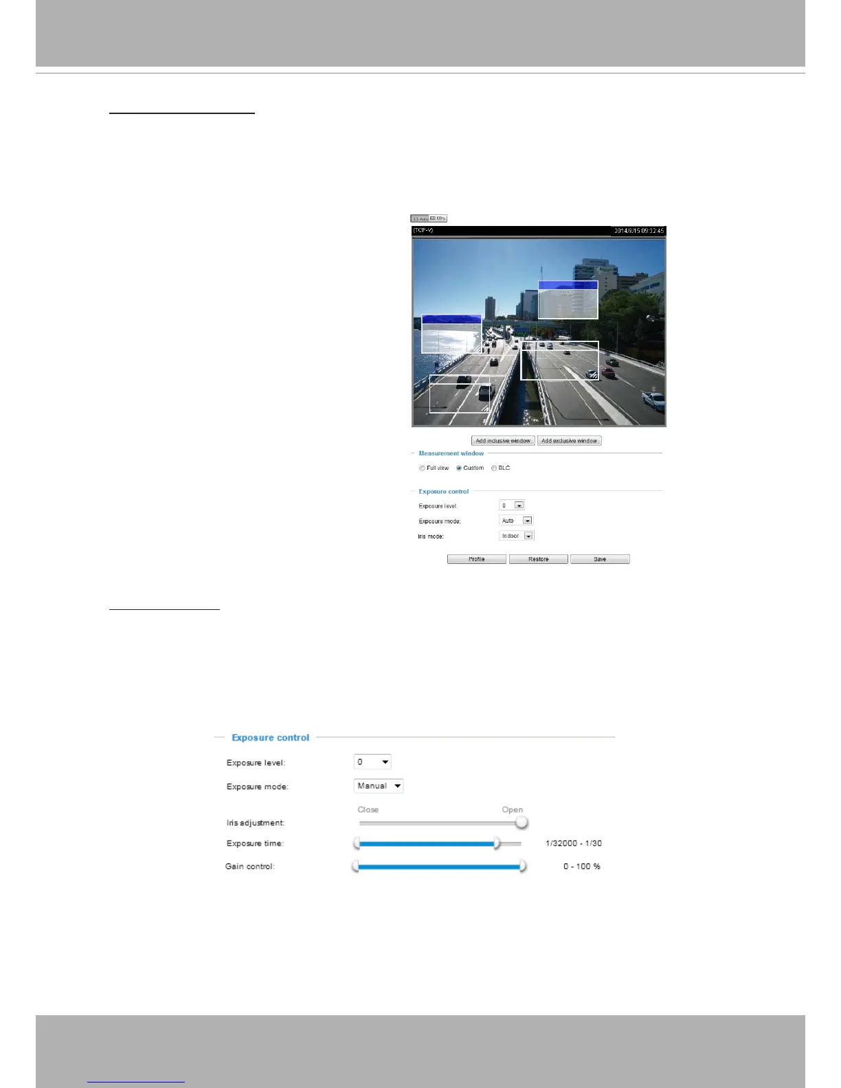 Manual: Select Manual to set a xed exposure time and gain. Then, tune the slide bar to set the