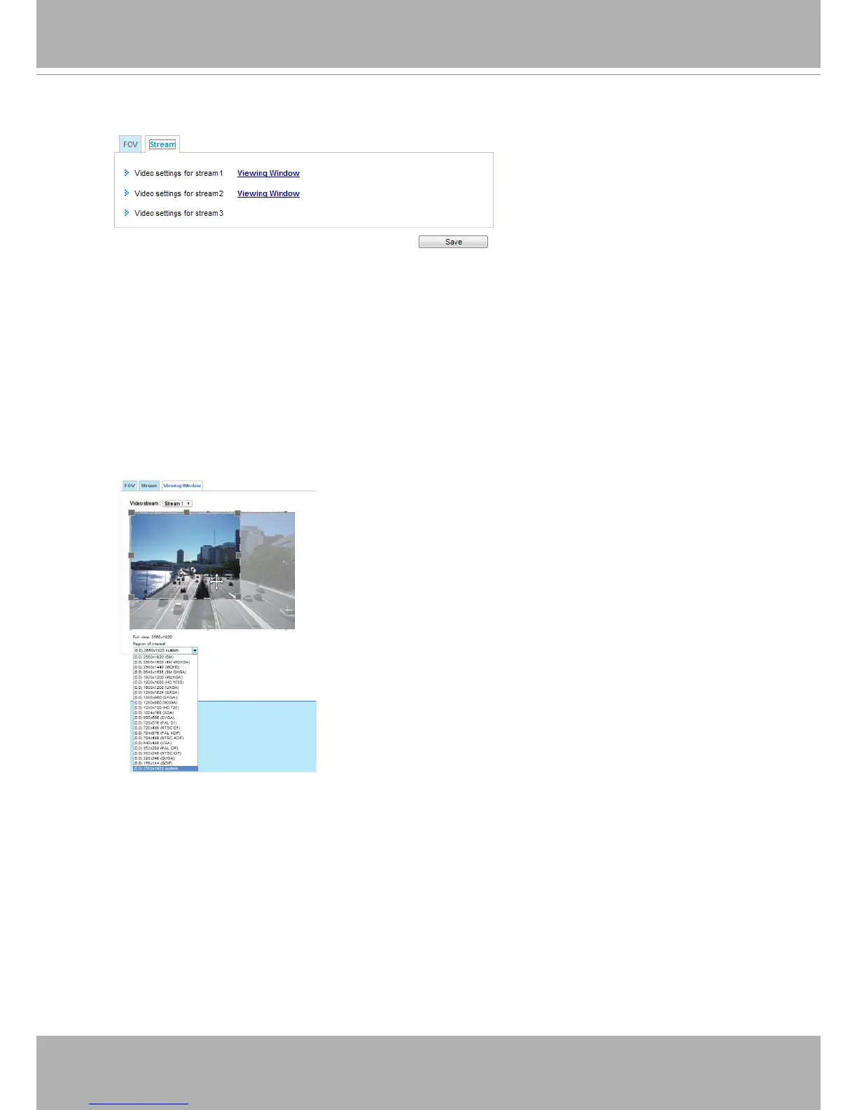 ■ Stream 1: Users can dene the "Region of Interest" (viewing region) and the "Output Frame Size"