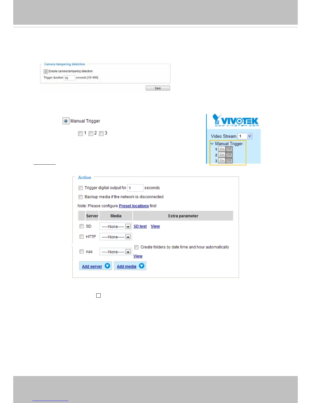 This option allows the Network Camera to trigger when the camera detects that is is being tampered