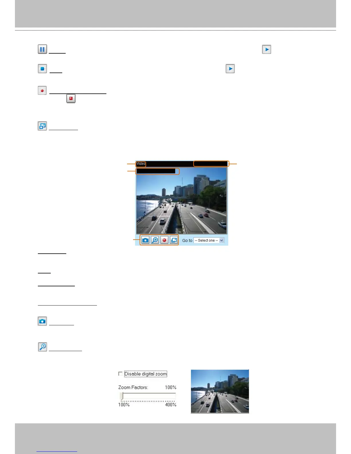 Stop: Stop the transmission of the streaming media� Click the Resume button to continue