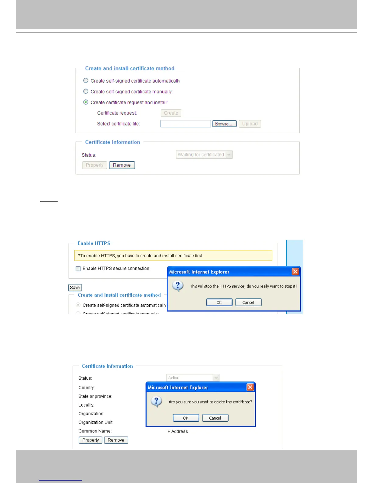► If you want to create and install other certificates, please remove the existing one. To remove the
