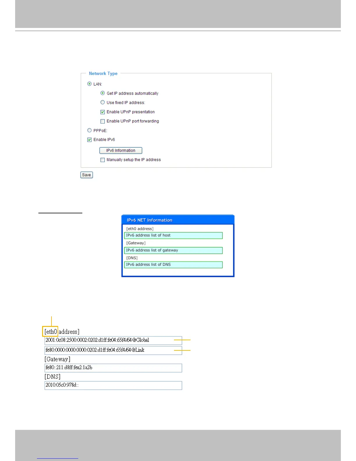 IPv6 Information: Click this button to obtain the IPv6 information as shown below�