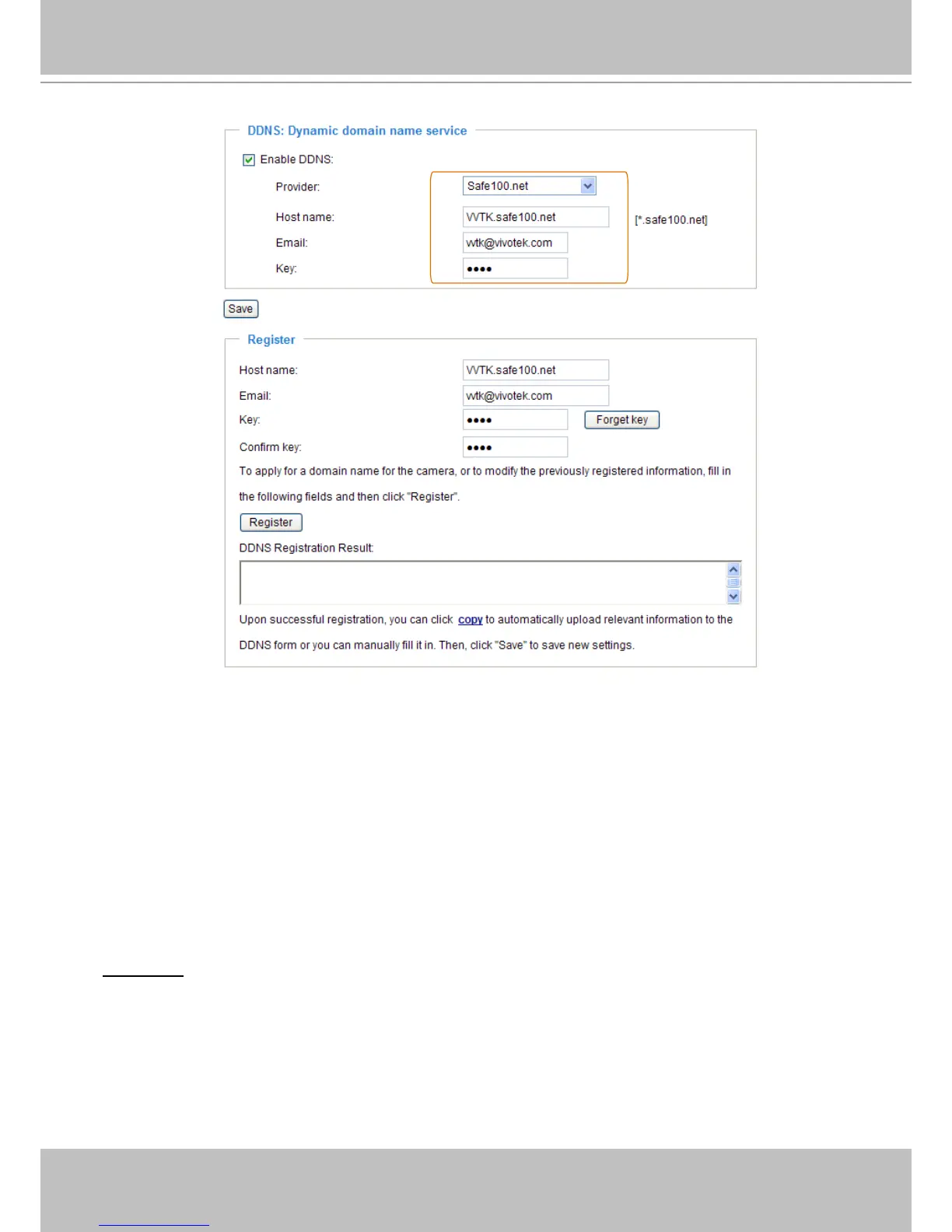 2. In the Register column, ll in the Host name, Email, Key, and Conrm Key; then click Register� After a