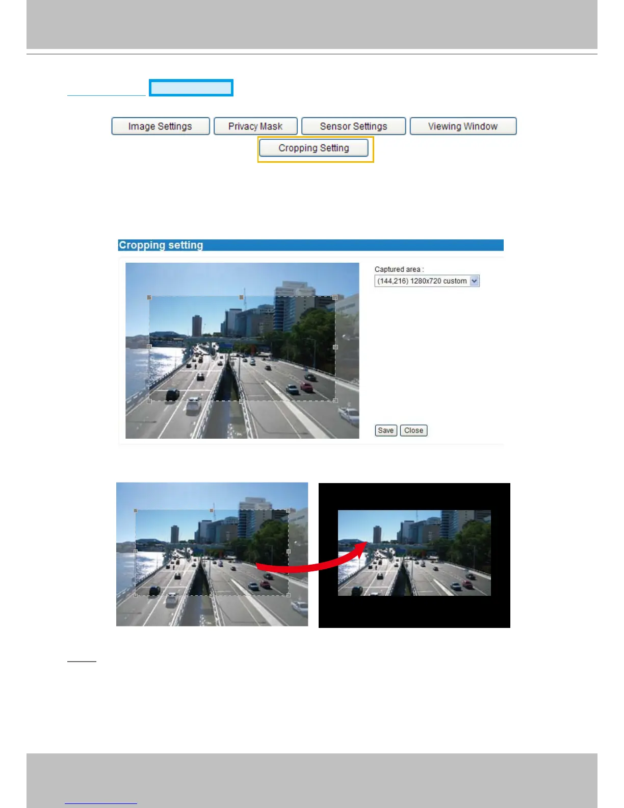 ► Select cropping mode will clear the settings in the Viewing Window and disable Motion Detection,