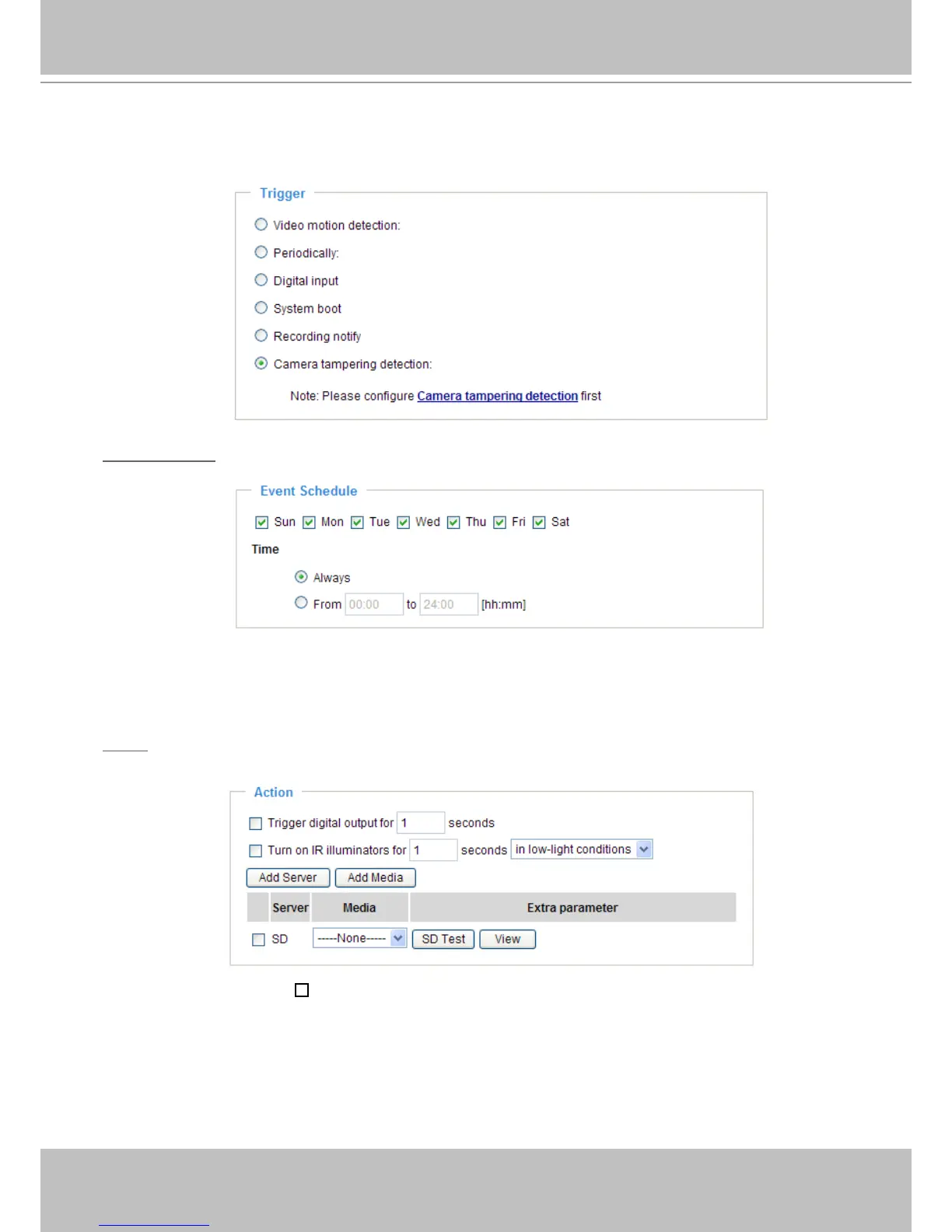 This option allows the Network Camera to trigger when the camera detects that is is being tampered