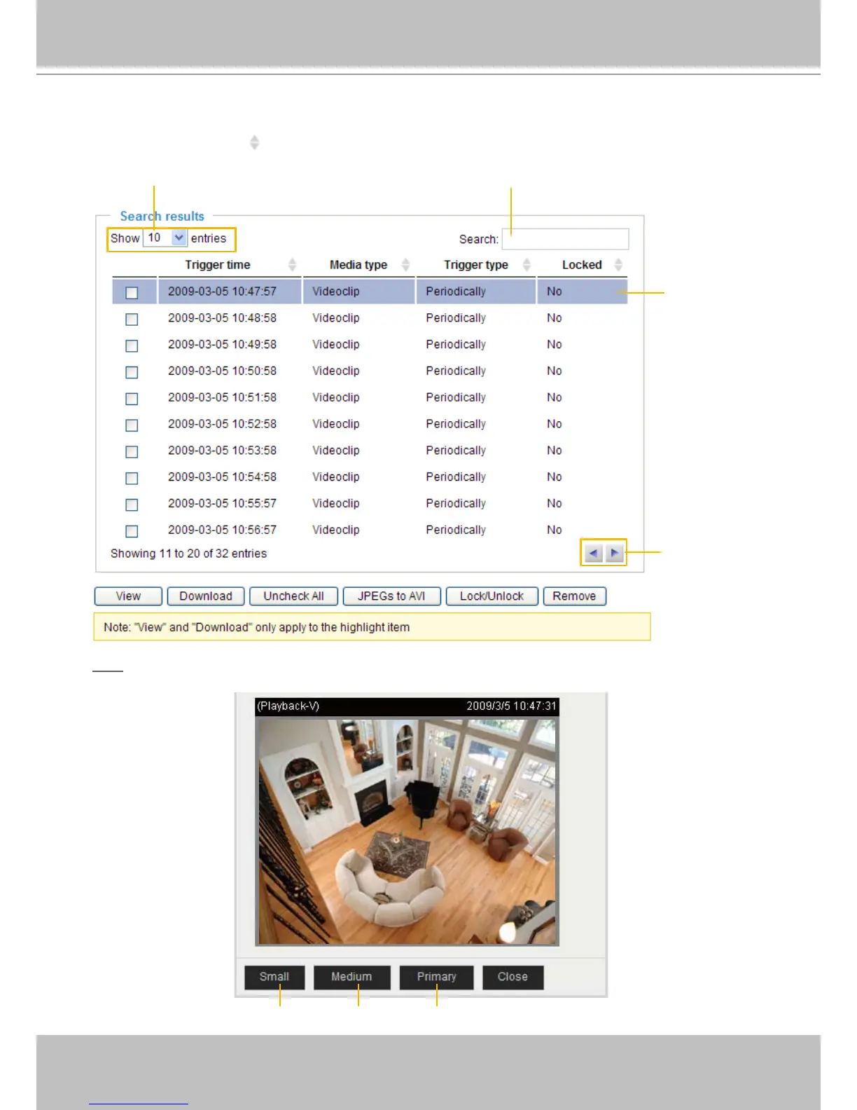 The following is an example of search results� There are four columns: Trigger time, Media type, Trigger
