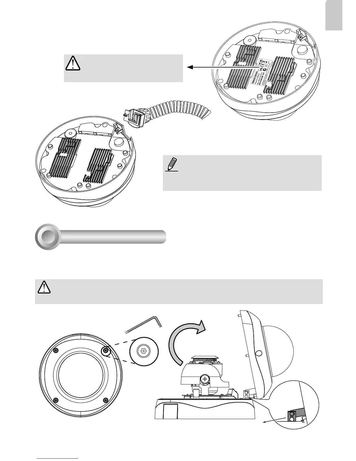 the camera base. Follow the steps below to install the camera either to a ceiling or a wall.